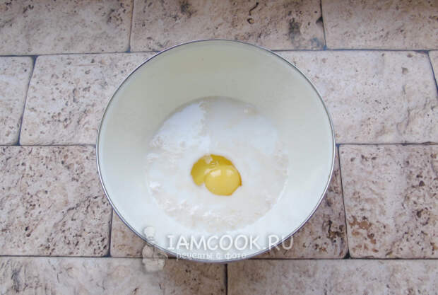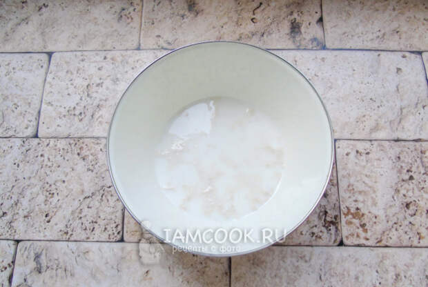 В миску накрошите прессованные дрожжи и налейте теплое молоко. Насыпьте сахар и перемешайте. Свежие дрожжи можно заменить сухими, которых потребуется 5 граммов.