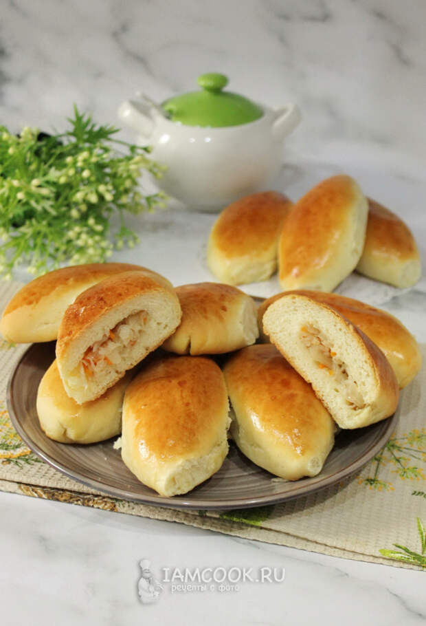Выпекайте пирожки с квашеной капустой в духовке, разогретой до 185-190 градусов, 25-30 минут. Время выпекания и температурный режим зависят от вашей духовки.