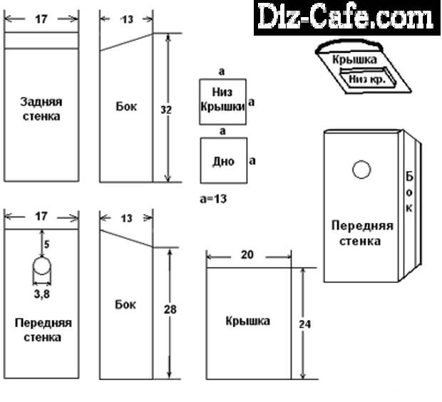 Ниже предложено несколько схем с подробной раскладкой по размерам деталей и процессу сборки.