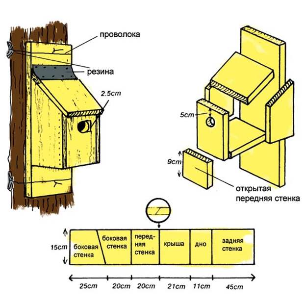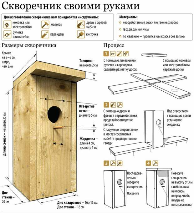 Рассчитывать именно на скворцов не обязательно – Вы ведь наверняка видели, какие птицы прилетают весной? Вот на них и будем ориентировать размеры «новостройки».