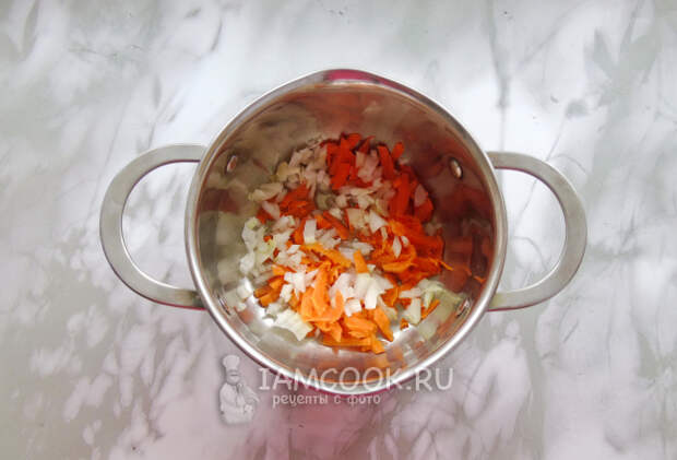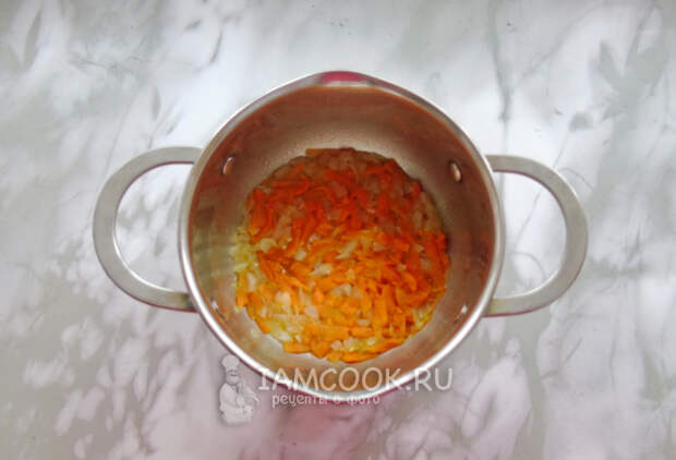 Пассеруйте овощи до прозрачности лука.
