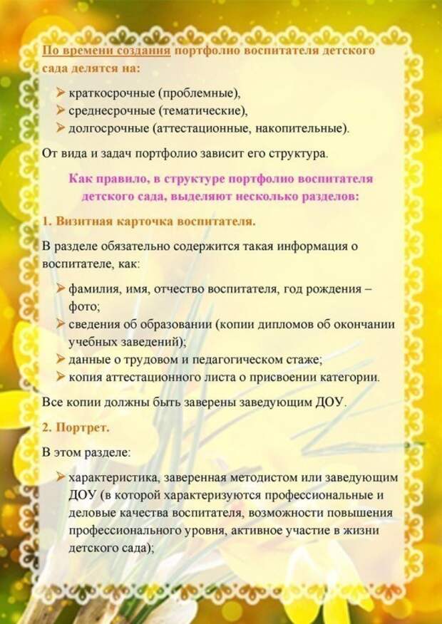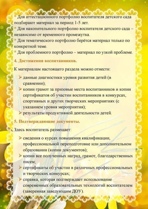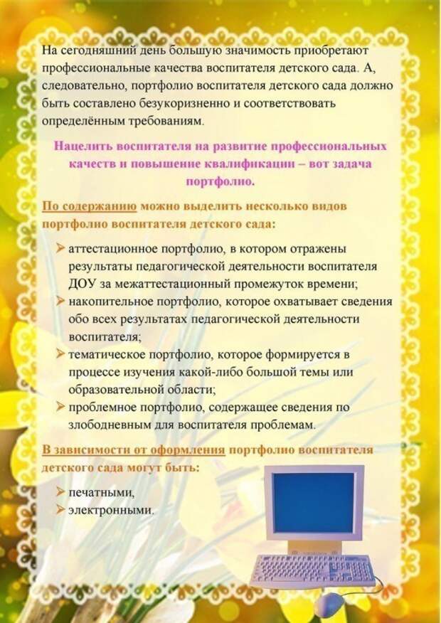 ПОРТФОЛИО ВОСПИТАТЕЛЯ ДЕТСКОГО САДА
