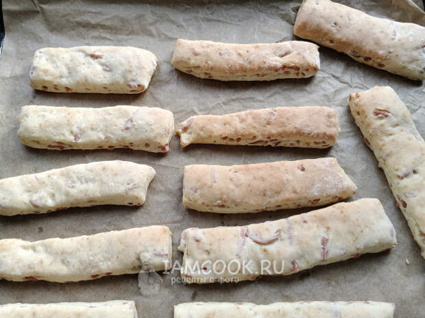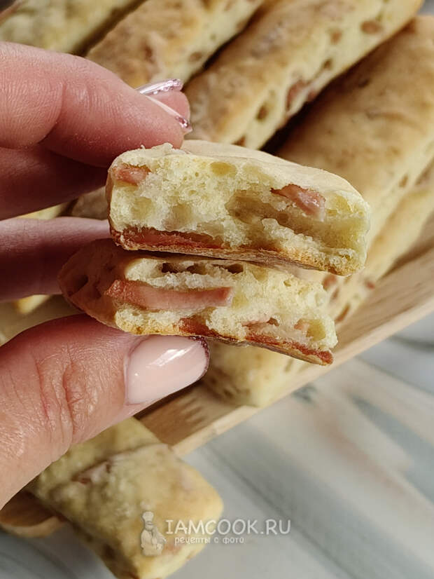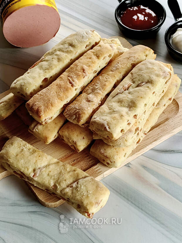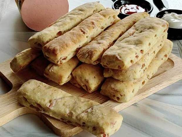 Палочки на кефире с колбасой готовы.