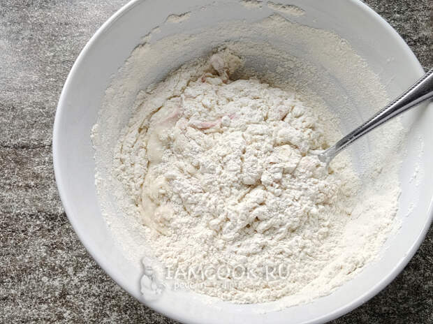 Перемешать и подбавить еще муки, пока не получится мягкий колобок теста.