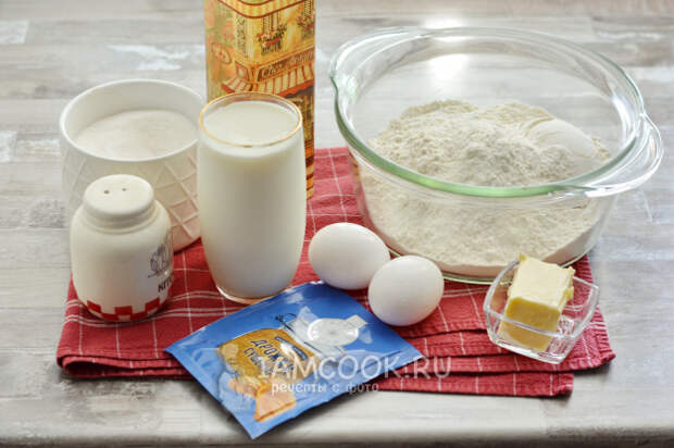 Подготовьте все продукты для теста по списку. Молоко и масло должны быть комнатной температуры.