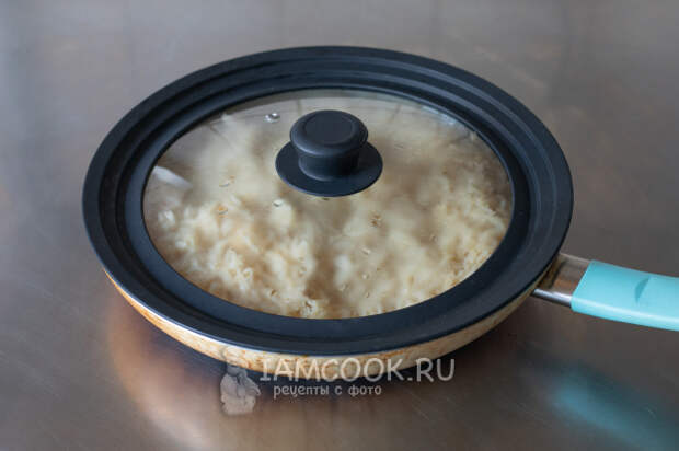 После этого открываем крышку, промешиваем. И даём отдохнуть под крышкой на остаточном тепле конфорки электроплиты ещё 10 минут. На газовой плите, вероятно, нужно ещё минут 5 давать самое слабое тепло, какое только возможно, а потом ещё 5 - без огня.