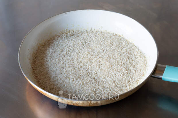 Равномерным слоем рассыпаем рис поверх лука.