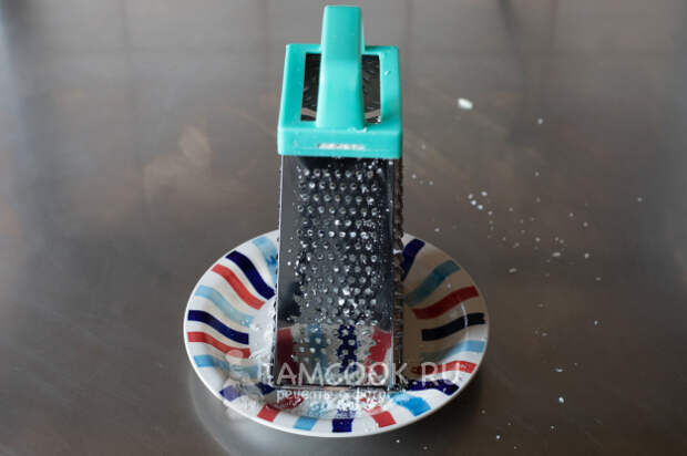 Тем временем трём сыр (если не собираемся тереть его непосредственно над тарелками в момент подачи).