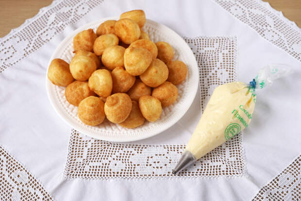 В готовых профитролях образуется характерная полость. Именно в неё будет заполняться крем.