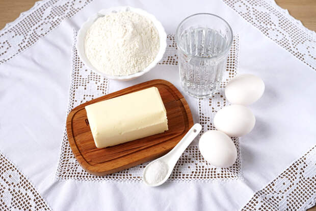 Включить духовку на 180 градусов. Для профитролей берём масло и яйца комнатной температуры.