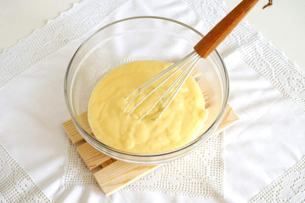 Крем за это время загустеет, станет гладким и шелковистым. Переложить готовый крем в миску. Накрыть пленкой в контакт (она должна полностью соприкасаться с поверхностью крема). Убрать крем до полного остывания.