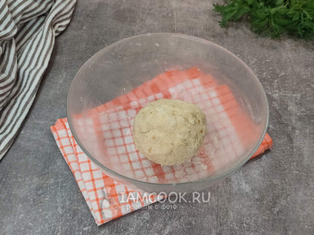 Тесто нужно замесить. Но в данном случае правильнее будет сказать - собрать тесто в колобок. От тепла ваших рук масло начнет таять и тесто постепенно соберется в комочек. И всё, оно готово к дальнейшей работе.