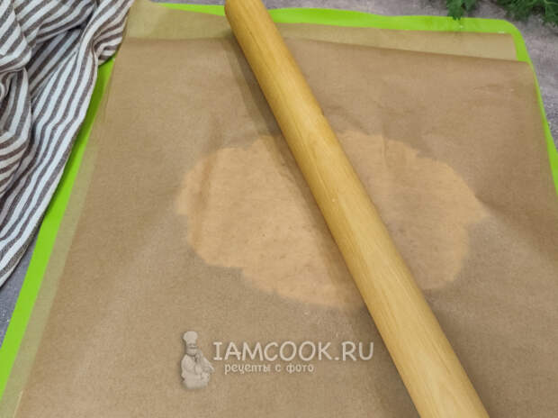 Раскатываем тесто в тонкий пласт, толщиной примерно 4-5 мм.