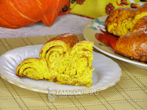 Ароматная, яркая и вкусная тыквенная плетёнка готова. Приятного аппетита!